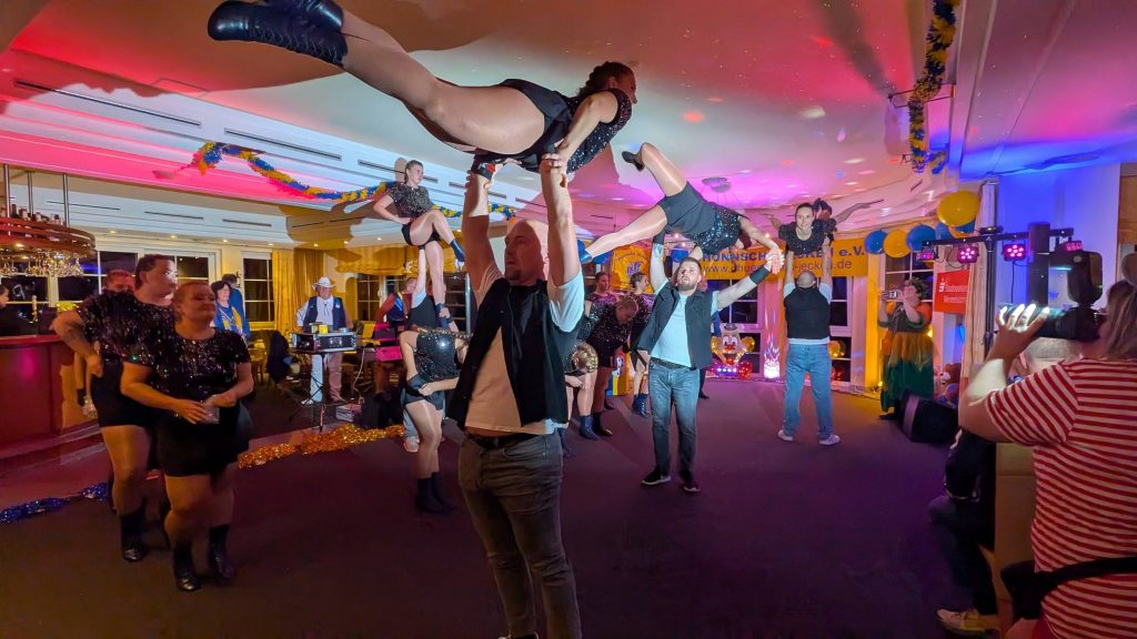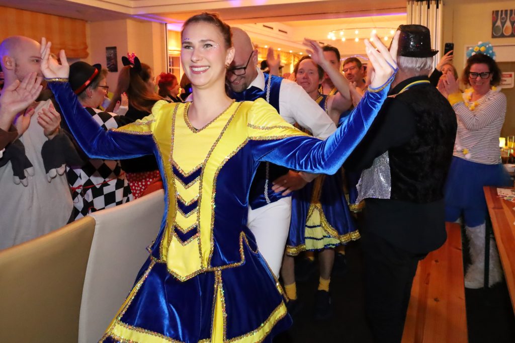 Nach einer kurzen Mittagspause ging es weiter nach Ascheberg zu unseren Freunden vom Hotel Restaurant Clemens August. Hier heizte zunächst das Männerballett dem Publikum ein, bevor die Tanzgarde dazu kam und zum Schluss als Highlight gemeinsam getanzt wurde. Das stärkende Schnitzelbrötchen im Anschluss kam genau richtig.
