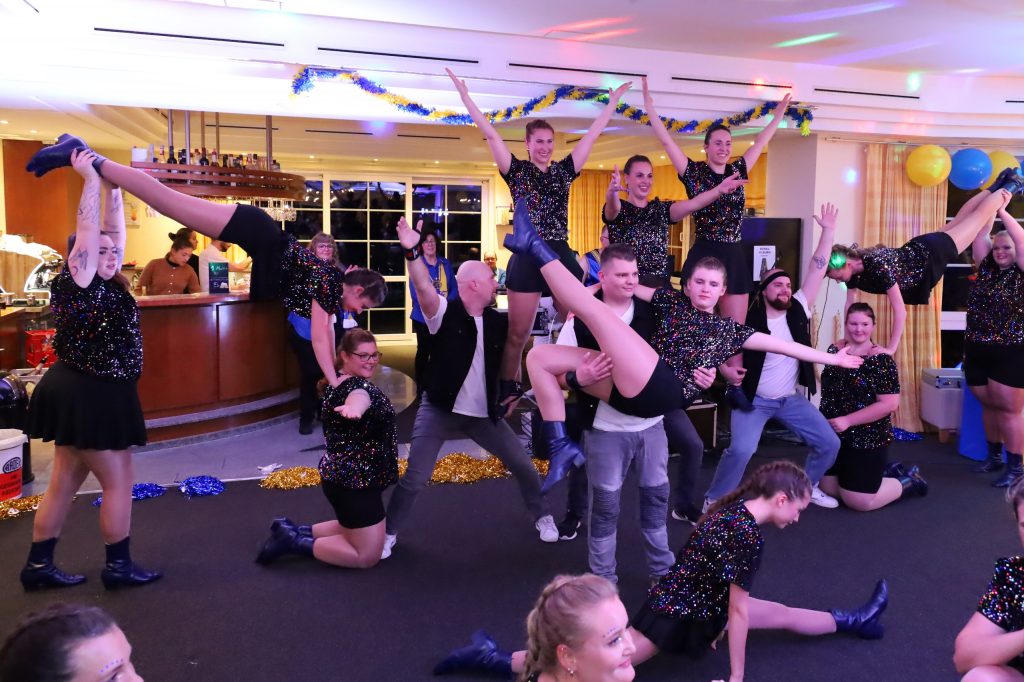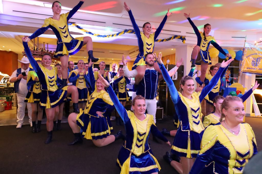 08.02., Weiberfastnacht: Endlich geht es los! Acht tolle Auftritte warteten auf die Tanzgarde und den Vorstand, davon einer mit tatkräftiger Unterstützung des Männerballetts.
